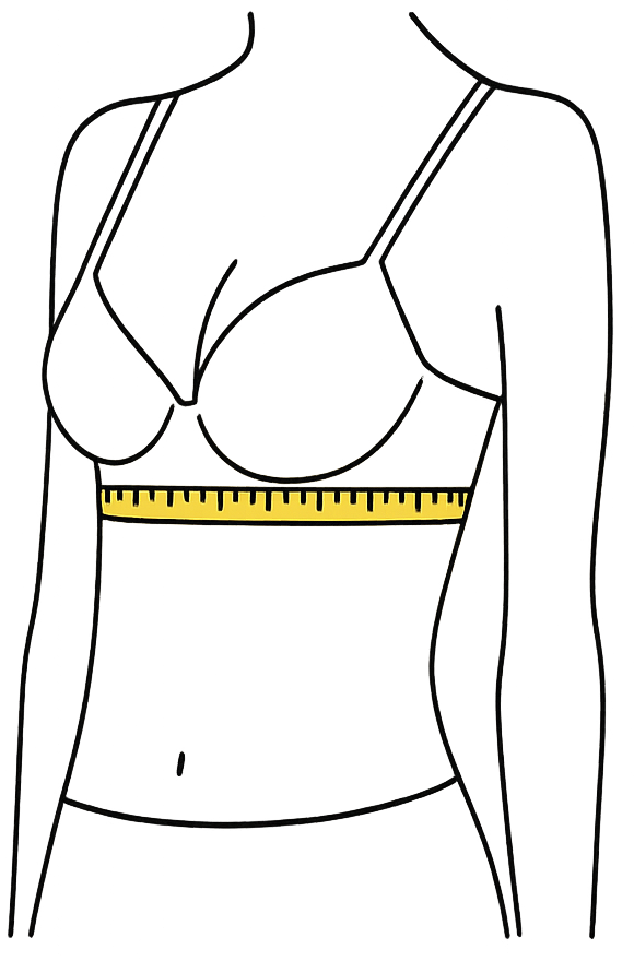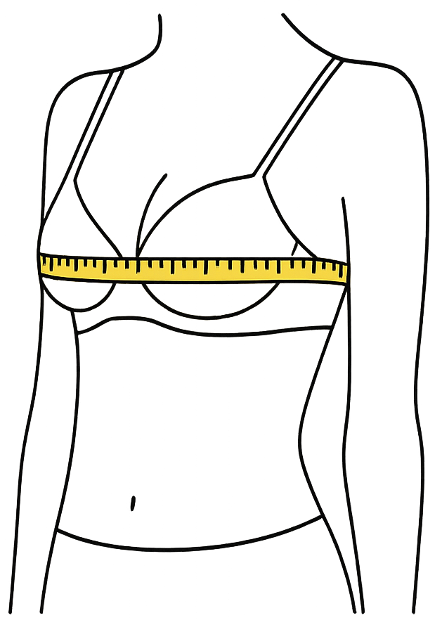 Para medir el bajo busto, colocá el centímetro justo debajo del busto, rodeando el torso y manteniéndolo horizontal. Esta medida corresponde al contorno de tu espalda.
